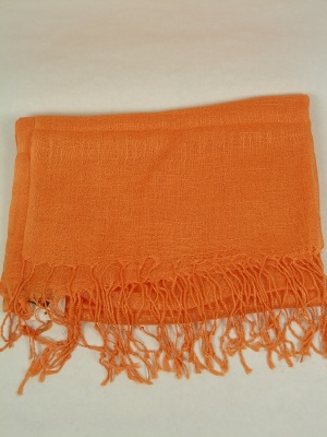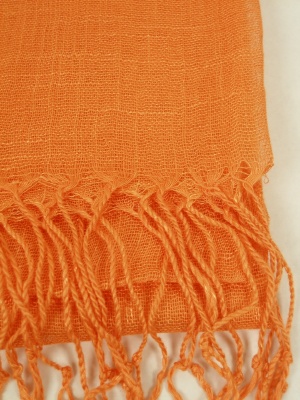 レーヨン60%・麻40%で柔らかくボリュームが出すぎないストール。(幅57cm・長さ160cm)鮮やかなオレンジです。