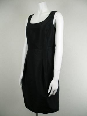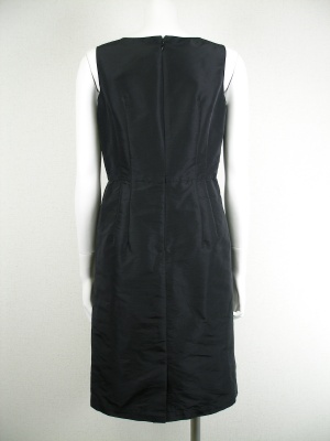 光沢とハリのある素材のワンピース。スカートにはタックを寄せ、少しふくらみを持たせてあります。裏地はポリエステル100%。