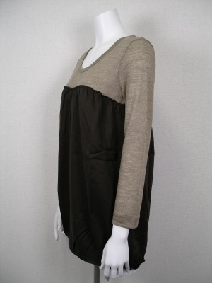 異素材使いのカットソー。上は伸縮性のあるウールで下はコットン、裏地はポリエステル。