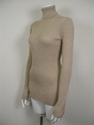 キラキラしたラメのリブニット。シルク混で柔らかい素材です。