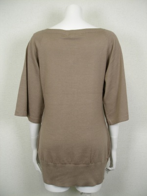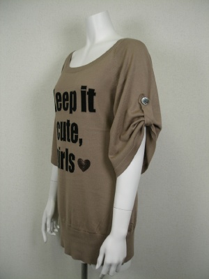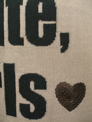 ロング丈のロゴニット。ハートの部分はスパンコールです。七部のお袖はくしゃっとロールアップしても。