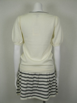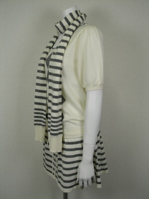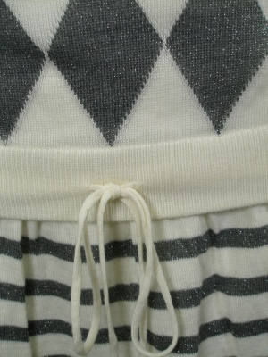アーガイルのニットとボーダースカートを組み合わせたワンピース。同素材のマフラー付き。グレーの部分のみラメ入りです。