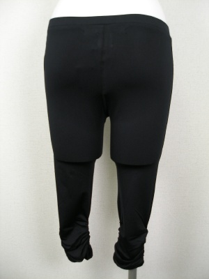裾にクシュッとギャザーを入れた6分丈レギンス。膝下辺りの丈です。