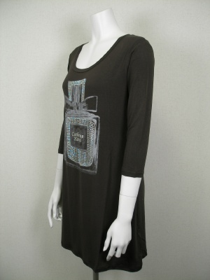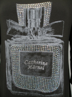 香水瓶のプリントはキラキラのラインストーン付き。生地は柔らかくストレッチが効いています。