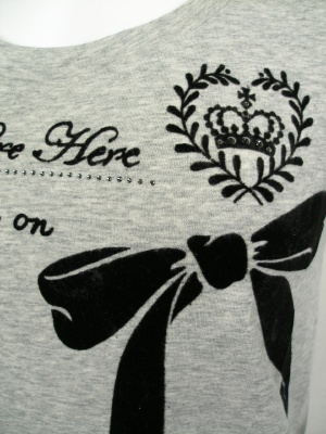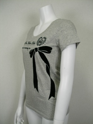 ロゴとリボンはフロッキーでやや起毛しています。ライストーンも使ってフェミニンな印象です。