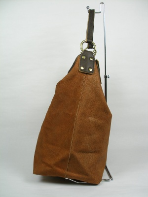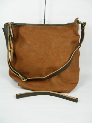 クタッとした牛革のバッグ。ストラップは2種類あり付け替えも簡単。天ファスナーで中は2部屋に分かれていて使いやすいデザインです。