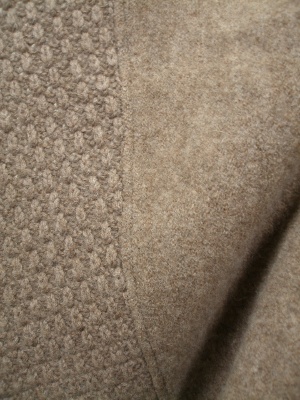 タートルでスポンとかぶるタイプ。ベルトで留めるので安定します。とても暖かい圧縮ウール。