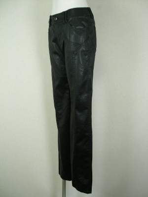 ストレッチの効いた穿きやすいストレートパンツ。やや光沢があります。