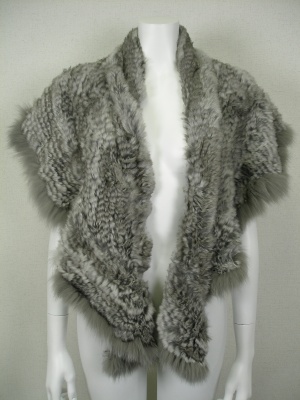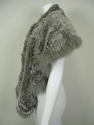 ラビットファーにフォックスでアクセントをつけたショール。前で結べばケープ風、肩にかけるだけでもマフラーのように巻いてもOK。