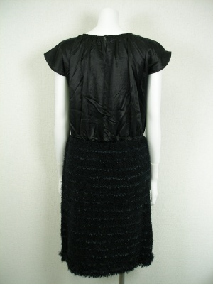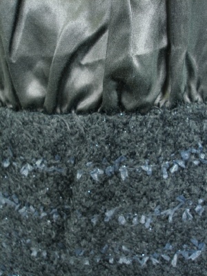 スカートは起毛したニット、トップスは綿・シルクで光沢のある素材。スカートには裏地付き。