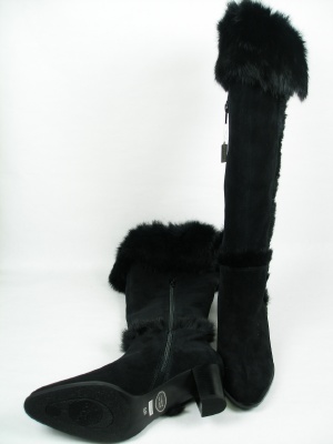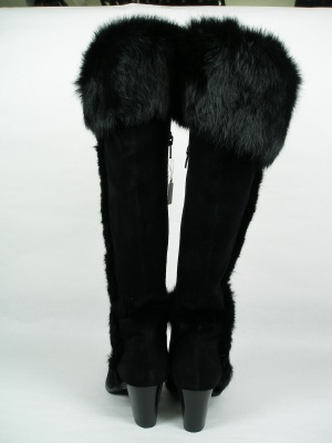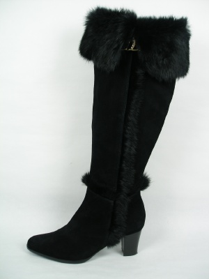 スウェード×ファーのシックなロングブーツ。ファーの折り返し部分をのばすとニーハイブーツに。