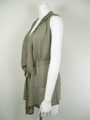 薄手ニットのベスト。ドレープがエレガントです。ベルトを後ろで結んでもOK.