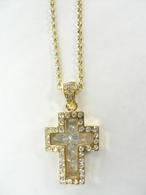 厚みのあるキラキラのクロスが可愛いネックレス。スワロフスキーとキュービックジルコニアを使っています。