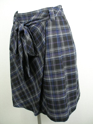 まきスカート風のデザイン、チェック柄が前身ごろだけバイヤスで切り替えになってます。裏付き