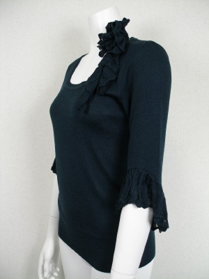 取り外せるコサージュは袖口のフリルと同じ素材です。