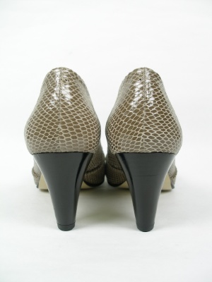 インソールのクッションでとても履きやすいパンプス。ヘビの型押しですが上品な印象です。