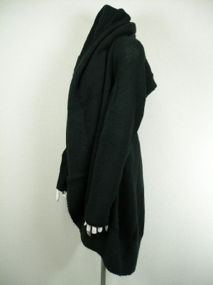 首元にたっぷりボリュームの出るニットカーディガン。大判のストールをまとっているようです。