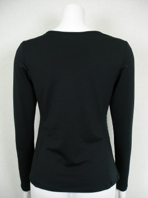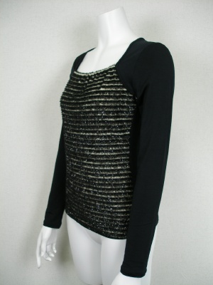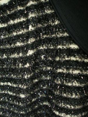 前身ごろにラメ糸とスパンコールをボーダー状に使用。2色ともベースは黒です。