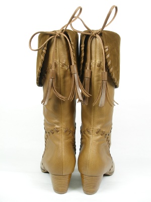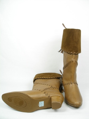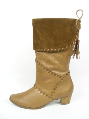 パッチワークデザインのミディアムブーツ。デニムをブーツインすると可愛く、太すぎないのでカジュアルなスカートに合わせてもOK。