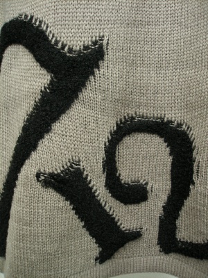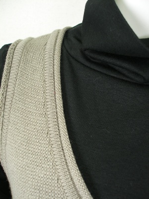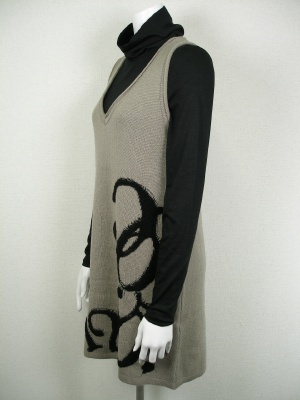 数字をデザインした柄が個性的なニットワンピース。インナーのタートルカットソーとの2点セット。裏地無し。