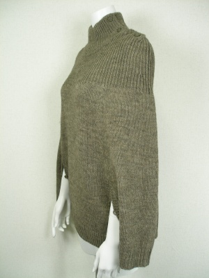 すっぽりかぶるニットポンチョ。腕を通す穴を使わない場合はボタンで閉じておきます。