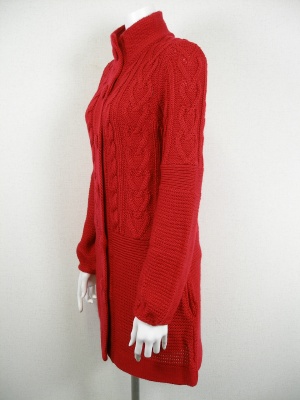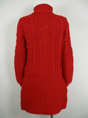 ケーブル編みのニットコートです。同じ糸の大きめクルミボタンやお袖のふんわり具合などが最高に可愛い一枚。裏地なし。