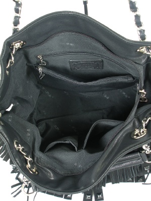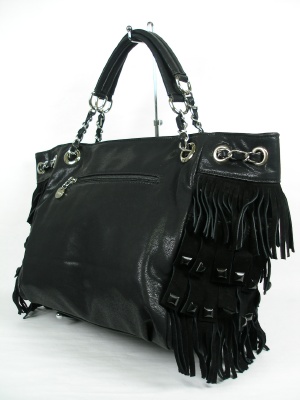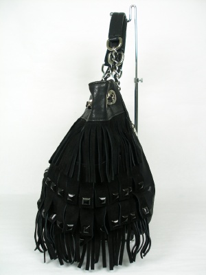 フリンジとスタッズ使いがカッコいいバッグ。天ファスナーで使いやすい。