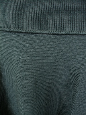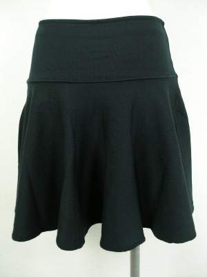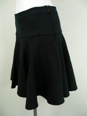 たっぷりフレアの少し短めスカート。ウエストはゴムではありませんが、やや伸縮性があります。脇にファスナー付き、裏地なし。