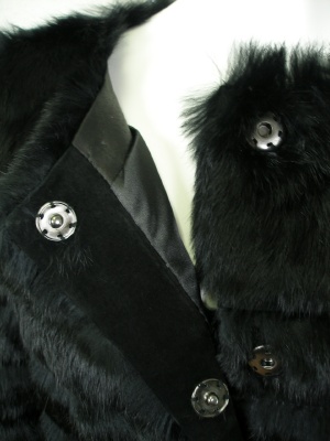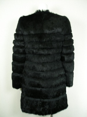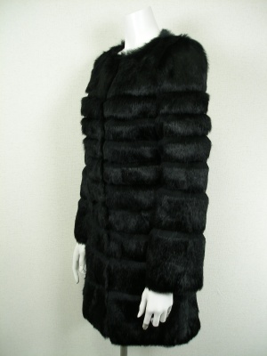 ラビットファーとレザーをボーダー状に縫い合わせたデザイン。ファーの毛足でレザー部分は隠れています。