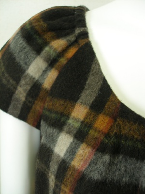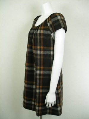 チェックのミニワンピース。タイツやレギンスを合わせて。インナーにタートルを重ねても可愛い。