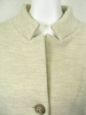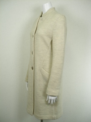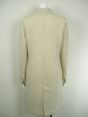 やや細身ですが柔らかく着やすいウールのコート。襟のデザインも首元をスッキリ見せてくれます。裏地なし。