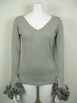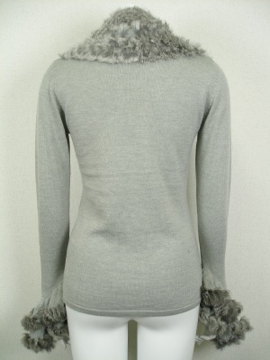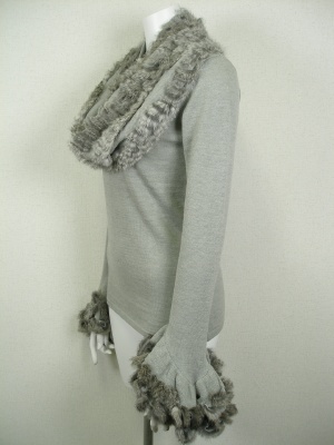 ネックウォーマーとフレアになった袖口にはラビットファーを編み込んであります。