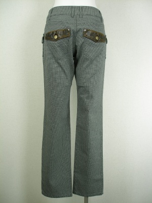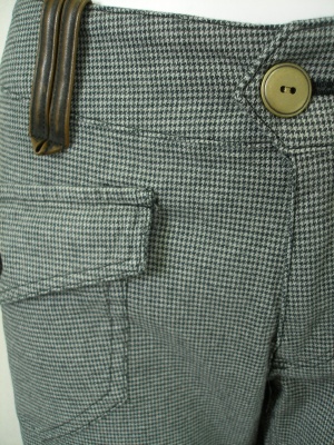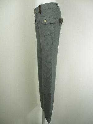 ライトグレーとチャコールグレーは細かい千鳥格子柄で、ミディアムグレーはグレンチェックです。ベルトループとポケットに合皮を使用。