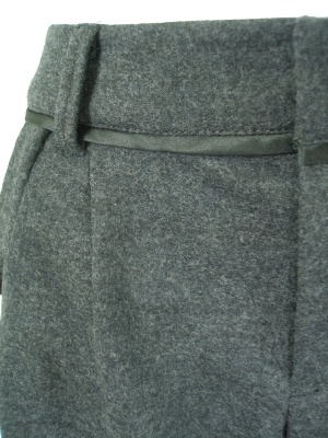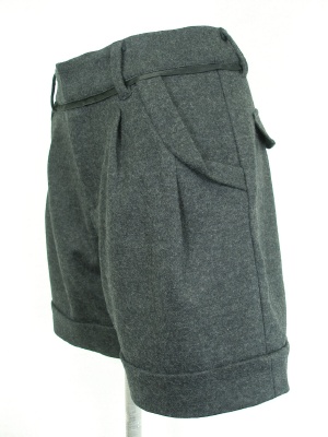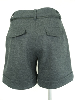 腿の部分が少し広がったタックショートパンツ。ウエストに細く使ったサテンがアクセント。裏地なし。