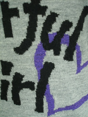 手書き風のロゴがキュートなニット。ネックはゆるめです。