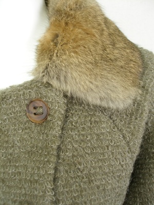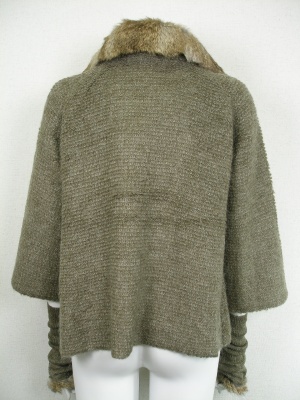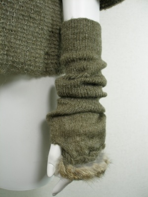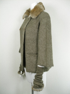 ジャケット風のニットカーディガン。ラビットファーの襟は外せます。同じ糸のロンググローブ付き。