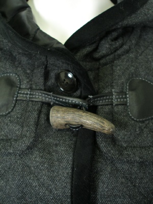 中綿入りキルティングジャケット。裏地はポリエステルで、一部牛革を使用。