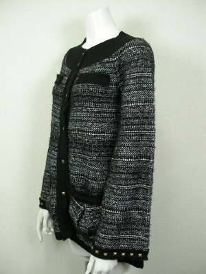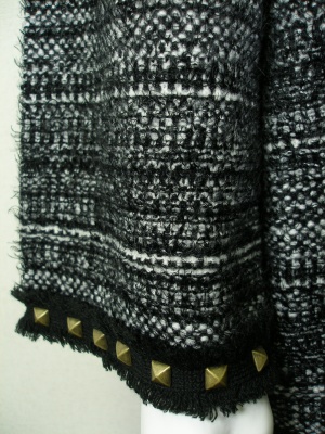 ニットのロングジャケット。幅広のお袖には袖口にスタッズをずらりと並べました。裏地なしのカーディガンタイプ。