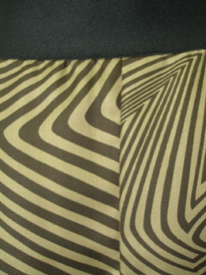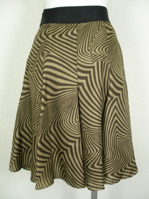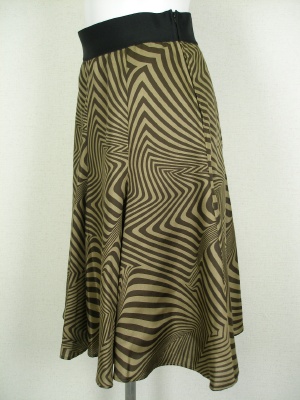 裾に向かって広がるエレガントなスカート。腰周りは広がらずスッキリしたデザイン。ウエストは幅広ゴムを使用していますが、サイドにファスナーも付いています。