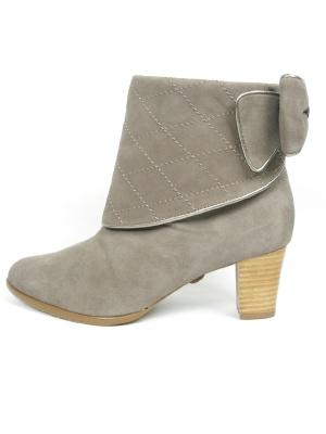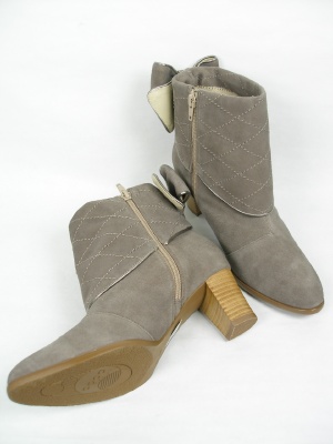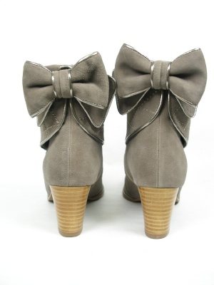 バックのリボンがキュートなショートブーツ。折り返し部分はキルティングのようなステッチ入り。