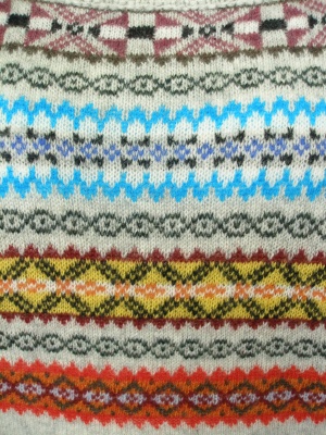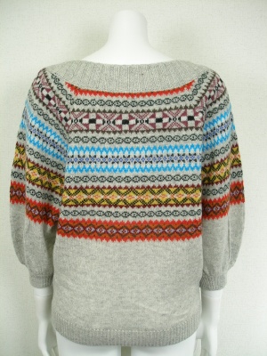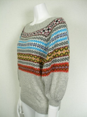 フォークロアな柄のドルマンスリーブニット。一枚で着ても可愛く、インナーに長袖カットソーを重ねてもOKです。