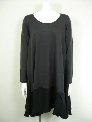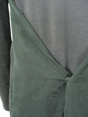 スカート部分はキュプラでやや光沢があります。後ろのスナップボタンを外すとゆったりAラインに。裏地なし。