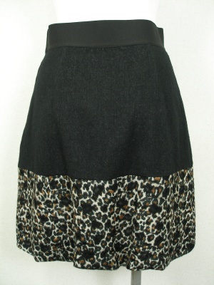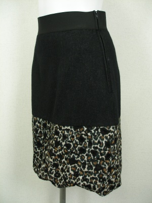 暖かそうなウールとアニマル柄が意外とマッチ。裾はバルーンですが広がりすぎず、着こなしやすいスカートです。