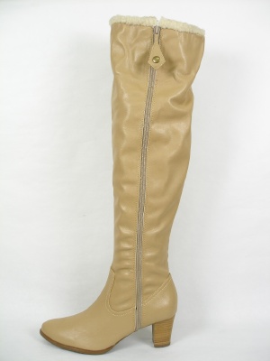 細身のボアが可愛いニーハイブーツ。デザイン上、外側にもファスナーが付いていますが実際には内側のファスナーを使います。