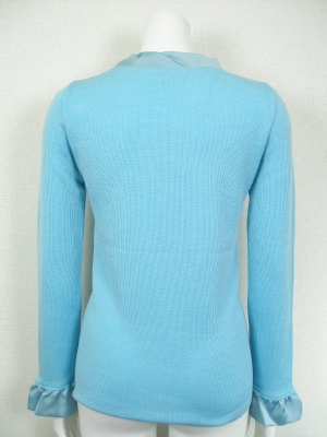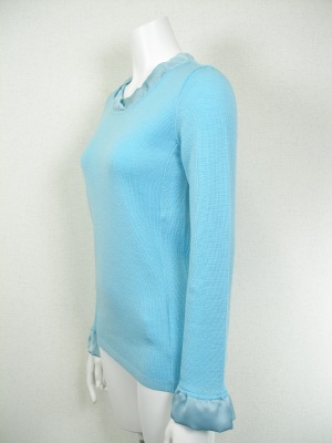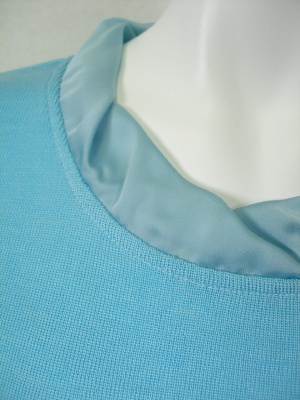 シンプルなニットのネックと袖口に、ポリエステルの別布をふわりと付けてあります。