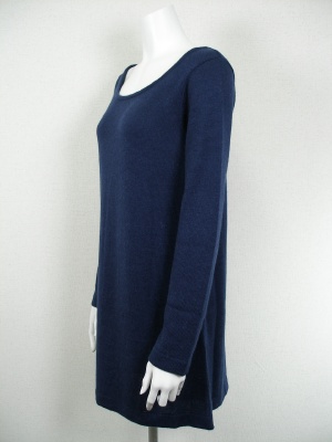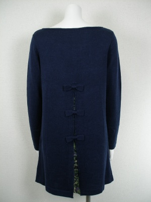 うしろリボンのニットワンピース。プリントの切り替えがかわいい。