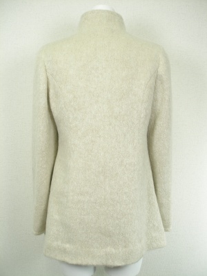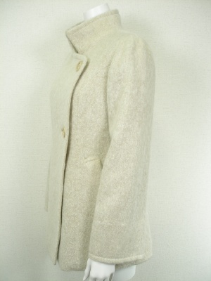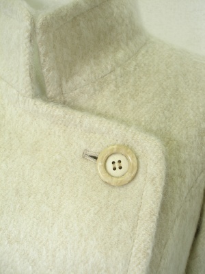 ふんわり起毛した素材のコート。第一ボタンを外してピーコートのようにしても着こなしやすい。