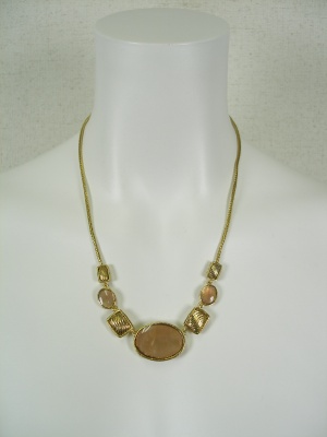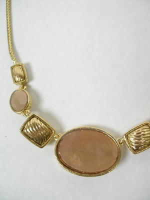 シェルのような繊細な色合いとゴールドの組み合わせがアンティーク風のネックレス。