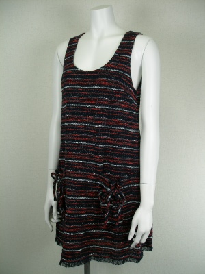 トリコロールカラーをベースにキュートなチュニックワンピ、裏付きで裾はフリンジ特集