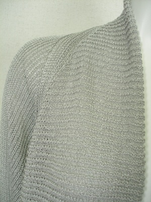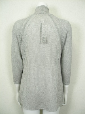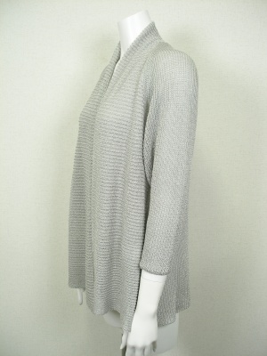シャリッとした素材が春らしいニットカーディガン。ホックやボタンのないサラリと羽織るデザインです。
